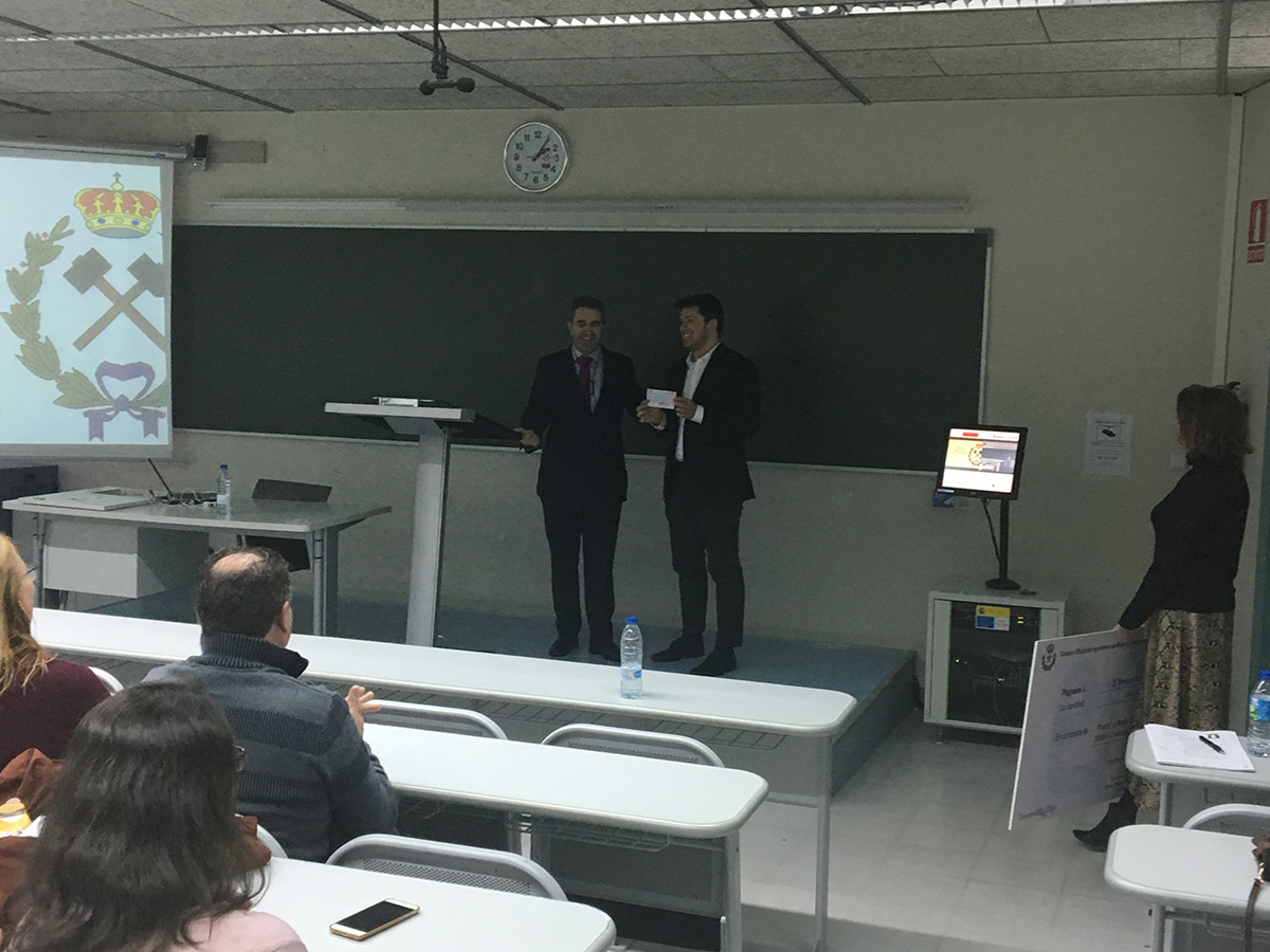 Entrega do Premio ao Mellor Expediente do Máster Universitario en Enxeñaría de Minas do curso 2017/18, premio concedido polo COIMNE. Este ano o premio foi para Enrique Alonso Villar.